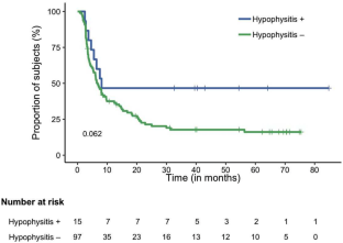 Immune checkpoint inhibitors, single or in combination, have recently become a cornerstone for the treatment of many malignancies. Ipilimumab, a CTLA-4 inhibitor, was initially FDA approved for treatment of unresectable or metastatic melanoma and subsequently in combination therapy for other cancers. Ipilimumab-induced hypophysitis (IH) risk of development varies in different studies between 0 and 17%. Furthermore, little is known on how to predict which patients will develop IH and its impact on efficacy of Ipilimumab and survival for these patients. Here we reviewed IH and its impact on progression-free survival (PFS) and overall survival (OS).