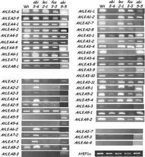 Parcy F, Valon C, Raynal M, Gaubier-Comella P, Delseny M, Giraudat J. (1994) Regulation of gene expression programs during Arabidopsis seed development: roles of the ABI3 locus and of endogenous abscisic acid. Plant Cell 6:1567–1582