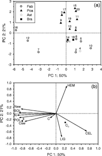 PCA analysis showed that chemical characteristics (traits) differentiated plant families. The mineralization of root C varied greatly in terms of kinetics and in the total amount of C mineralized (36 % to 59 % of added C). Mineralization constant (k value) was negatively correlated with hemicelluloses and positively with N content. Poaceae roots that combined high hemicelluloses, low cellulose and low total N, showed low degradation rate and cumulative C mineralization.