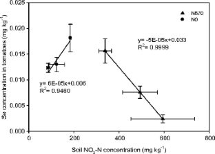 The negative effect of continuous application of inorganic N-fertilizer on vegetable Se concentrations was likely the result of soil nitrate’s competitive or antagonistic effect on Se uptake by vegetables grown in an intensive polytunnel vegetable cultivation system.