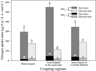 Liu, M., Qiao, N., Zhang, Q. et al. Cropping regimes affect NO3− versus NH4+ uptake by Zea mays and Glycine max. Plant Soil 426, 241–251 (2018). https://doi.org/10.1007/s11104-018-3625-6