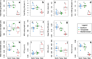 Prieto I, Roumet C, Cardinael R, Dupraz C, Jourdan C, Kim JH, Maeght JL, Mao Z, Pierret A, Portillo N, Roupsard O, Thammahacksa C, Stokes A (2015) Root functional parameters along a land-use gradient: evidence of a community-level economics spectrum. J Ecol 103:361–373. https://doi.org/10.1111/1365-2745.12351