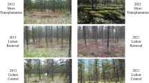 Sulyma R, Coxson DS (2001) Microsite displacement of terrestrial lichens by feather moss mats in late seral pine-lichen woodlands of north-Central British Columbia. Bryologist 104:505–516