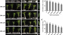 As shown in Fig. 5b, under both the normal and salt-stressed conditions, there were no significant differences in plant height between the transgenic lines and control poplars during the first 20 days. From 30 to 45 days, the relative plant height of the transgenic and control lines appeared to differ between salt-treated and untreated conditions. Most transgenic lines grew faster than wild-type poplars under both salt treatment and no treatment, but some transgenic lines—such as 1–72 of PtSOS2.1 and 3–7 of PtSOS2.3—showed no growth rate advantage in plant height (Fig. 5b). In comparison with non-transgenic poplar, all transgenic lines exhibited a greater ability to resist salt damage and most transgenic lines grew faster than wild-type poplars under salt stress treatment.