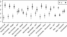 For the full scale and group subscale of the Society Works Best index, the MZ correlation is more than twice the DZ correlation. This suggests that it may be more appropriate to run ADE models for these variables, which estimate dominance effects (D) that capture certain types of gene by gene interactions instead of common environment effects. However, because it is not possible to estimate common environment and dominance effects simultaneously without an extended twin family design, and because our hypotheses do not hinge on whether the genetic effects that we are examining are additive or non-additive, we instead report ACE and AE models for all variables. In these models, we interpret the A as an estimate of broad-sense heritability, which includes both additive and non-additive genetic effects (see Coventry and Keller 2005).