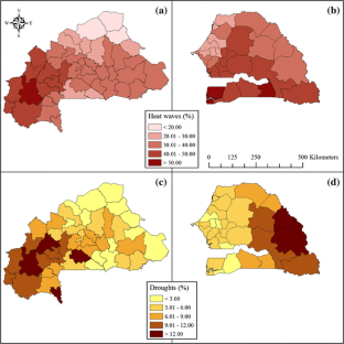 Burkina Faso and Senegal are located in the semiarid Sahelian region of Western Africa. Both countries are characterized by a distinct North–South gradient of temperature and precipitation (Grouzis et al. 1998; Hampshire and Randall 1999). While the northern Sahelian areas are generally hot and arid, the southern regions are relatively cooler and more humid, making farm production more lucrative (Henry et al. 2003, 2004). Since the 1960s, West Africa has experienced a long-term reduction in rainfall and a warming in temperatures (Funk et al. 2012; Nicholson 2001). These historical trends are projected to continue in future decades as a result of global climate change (Niang et al. 2014), making this region an important geographical location for the study of climate impacts on rural livelihoods.