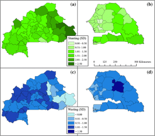 For Burkina Faso, the DHS survey year (2003) falls within the 5-year window (2001–2006) prior to the census round in 2006. However, for Senegal the DHS survey was conducted in year 2005, three years after the census round in 2002. Although another full DHS survey was conducted in Senegal in 1997, this earlier wave did not include the relevant anthropometric indicators. We use the Senegal DHS for 2005 based on the common assumption that food security within a population is relatively static (Saha et al. 2009).