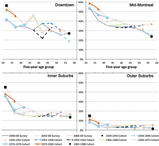 Grimsrud, M., El-Geneidy, A. Transit to eternal youth: lifecycle and generational trends in Greater Montreal public transport mode share. Transportation 41, 1–19 (2014). https://doi.org/10.1007/s11116-013-9454-9