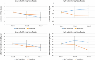 Social marketing and the built environment are two important ‘tools’ to manage travel demand which have had significant attention in the literature separately. Most previous studies evaluating the effects of social marketing programs have relied on pre- and post- surveys, using self-reported measures without any objective measures of travel behaviour change. Further, there is a lack of evidence on whether the effects of the built environment are synergistic when combined with other intervention programs, such as social marketing programs. This study contributes by quantitatively evaluating the relative and combined effects of the TravelSmart and the built environment on travel behaviour using objective GPS measurements. Between 2012 and 2014, daily travel data were collected using GPS equipment in suburbs of inner northern Adelaide, South Australia. Individuals in the households aged over 14 carried a portable GPS device everywhere for a period of 15 days during March–May in each year from 2012 to 2014, providing a total of three waves of panel data. The empirical analysis suggests that the TravelSmart program as a ‘treatment’ significantly reduced the car trips soon after implementation with longer term effects on reducing car trips in high-walkable neighbourhoods. For walking and bus trips, the TravelSmart program increased these 1 year after the ‘treatment’ with stronger effects on travel behaviour change for the participants living in high-walkable neighbourhoods than for those living in low-walkable neighbourhoods.