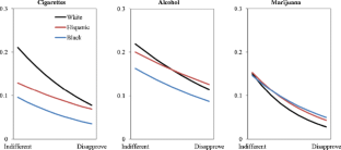 Logistic regression results of moderation by race of peer attitudes variable on cigarette, alcohol, and marijuana use (n = 17,865). Confidence intervals (95 %) are reported in parentheses (DOCX 54 kb)