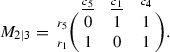 Now that the rows are linearly independent, we can engage “column elimination” to extract further operators. We move \(c_3\) to the far left to obtain