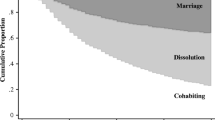 A few individuals experience a transition to both cohabitation and marriage over the time period, so I code these individuals as married by the end of the survey. Approximately 4 % of the sample experiences both a cohabitation and a marriage within the 36–60 month surveys.