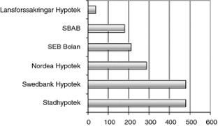 Normally mortgage institutions only offers first mortgage, i.e. a loan pledged up to around 80 per cent of the market value of the property. The second mortgage, i.e. a loan pledged above the first mortgage up to around 90–100 per cent of the market value, is normally only offered by banks.