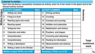 The campaign also developed a rapid tool to determine base-line measures for placing learners, since the level of schooling achieved was an unreliable indicator for placement.