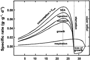 Brett JR, Groves TDD (1979) Physiological Energetics. In: Hoar WS, Randall DJ, Brett JR (eds) Fish physiology: bioenergetics and growth. Academic Press, New York, pp 279–352
