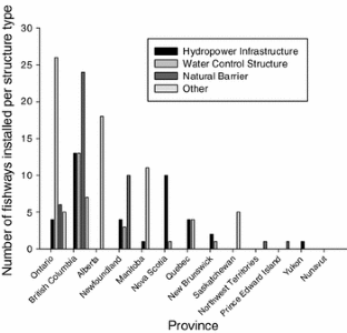 Comments by peer reviewers have improved this manuscript. Financial assistance was provided by the Fish Ecology and Conservation Physiology Laboratory at Carleton University and Fisheries and Oceans Canada’s Center of Expertise on Hydropower Impacts on Fish and Fish Habitat. Cooke is supported by the Canada Research Chairs program. Hatry, Thiem, Cooke, Smokorowski, Clarke and Katopodis are members of the Natural Sciences and Engineering Research Council of Canada HydroNet Strategic Network. We thank the many individuals and organizations that have contributed data to CanFishPass.