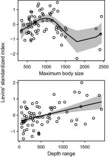 Smith KF, Brown JH (2002) Patterns of diversity, depth range and body size among pelagic fishes along a gradient of depth. Global Ecol Biogeogr 11:313–322