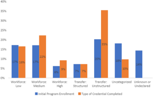 We use a state-wide degree code to identify the transfer-oriented degrees and workforce-oriented degrees, then link them with student program enrollment (degrees and programs share the same CIPs). When some programs are not designated to graduate students with credentials or are unable to link to the specific credentials due to the CIP code errors, the linkage between programs and credentials is missing, making us unable to categorize every program based on the degree code.