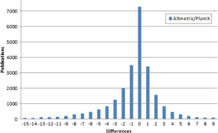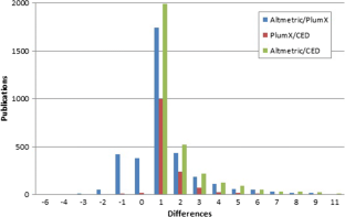 Meschede, C., & Siebenlist, T. (2018). Cross-metric compatability and inconsistencies of altmetrics. Scientometrics, 115(1), 283–297. https://doi.org/10.1007/s11192-018-2674-1.