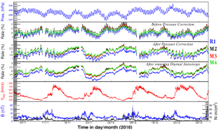 The value of \(\beta _{P}\) and its deviation from the mean value are the quantitative measure of the health of a PMT. These give us a measure of how well a PMT is functioning within its normal gain mode. Considering this criterion we isolated the PMTs and WCDs outside this 3\(\sigma \) range, and included PMTs and WCDs within 3\(\sigma \) range for our further analysis of solar modulations. This selection process improved the accuracy of the measurement and reduced the systematic errors. This process has made the data more suitable for accurate solar modulation studies.