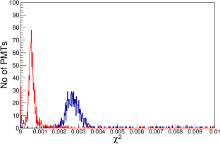 The distribution of \(\beta _{P}\) (\(R1\)) of all 1180 PMTs for the months of September, October, and November of 2016 is shown in Figure 14, which is Gaussian in nature. A Gaussian fit to this distribution gives us a standard deviation as shown in Table 1. We chose a cut-off limit of 2 and \(3\sigma \) levels. Using this criterion we have classified the PMTs and WCD s, which are shown in Table 5.