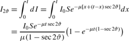 The total diffracted intensity at diffraction angle 2θ is the integration of dI at the same angle over the range of sample thickness x∈[0,t].