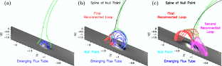 T. Török, G. Aulanier, B. Schmieder et al., Fan-spine topology formation through two-step reconnection driven by twisted flux emergence. Astrophys. J. 704, 485 (2009). doi:10.1088/0004-637X/704/1/485