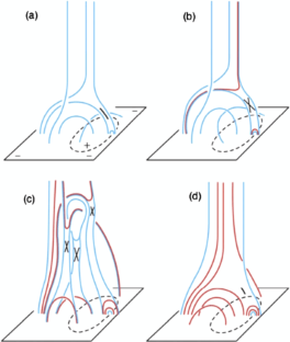 V.S. Titov, P. Démoulin, Basic topology of twisted magnetic configurations in solar flares. Astron. Astrophys. 351, 707 (1999)