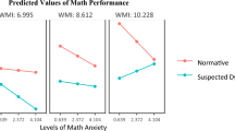 Throughout the years, multiple theoretical accounts of the negative (math) anxiety—(math) performance link have been advanced and refined (for an overview see Carey et al., 2016; Chang & Beilock, 2016). Based on interference explanations (e.g., Ashcraft & Krause, 2007; Pizzie & Kraemer, 2017; Sarason, 1972; Tobias, 1986; Wine, 1980), task-irrelevant thoughts and attentional misallocation compromise performance by reducing cognitive capacity and working-memory functions in the acquisition and retrieval phase during learning and during test-taking. Based on deficit explanations (e.g., Beilock & Willingham, 2014; Kirkland & Hollandsworth, 1980; Maloney et al., 2011; Tobias, 1990), inadequate preparation by avoidance of math-related content, and low domain-specific abilities, such as numerical (processing) competence, evoke anxiety and low performance. Consequently, math anxiety is merely a manifestation of one’s awareness of low math abilities.