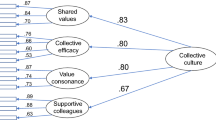 One purpose of this study was to test the CTC model proposed by Skaalvik and Skaalvik (2021). In this model, a second-order CTC variable was indicated by four first-order factors (positive and supportive relations with colleagues, collective teacher efficacy, shared values, and value consonance). The second-order factor analysis of CTC (Fig. 2) clearly supported the model. Both the first-order factors and the second-order factor had high factor loadings and the model fitted the data well. This is an important finding in itself, partly because it shows that a common understanding of educational goals and values among the teachers, positive and supportive collegial relations, and the belief in what the collegium can achieve through common effort are inter-rerated constructs. In previous research, associations with the indicators of a collective culture, for instance, collective teacher efficacy, have been analyzed separately. One problem with separate analyzes of intercorrelated constructs is that the importance of each individual construct may be overestimated. Another problem is that such analyzes may conceal complex processes and relations and therefore result in simplified analyses. Moreover, the problem with separate analyzes of intercorrelated constructs cannot be solved by including the constructs as primary factors in SEM analyses due to statistical covariance problems. Therefore, analyzing CTC as a second-order variable may be a promising avenue for exploring teachers’ work environment, motivation, self-efficacy, and work-related well-being.
