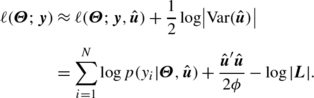 Since the integral in (3.5) is often intractable, we evaluate it via the Laplace approximation (Tierney and Kadane 1986), in which the integrand in (3.5) is replaced by its second-order Taylor series at the conditional mode of u given the current value of Θ. The resulting marginal likelihood is a function of only Θ, which can be maximized using numerical optimization procedures to find the maximum likelihood estimate of Θ.