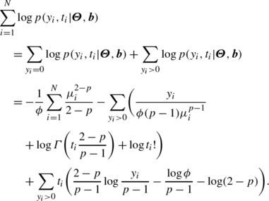 This is the typical setup in a mixed model. We have seen in Sect. 2.1 that for a given p, the compound Poisson distribution is a member of the exponential dispersion family. In such a case, existing inferential procedures developed for the exponential dispersion family (e.g., McCulloch and Searle 2001) can be readily applied. However, the index parameter p is generally unknown beforehand, in which the compound Poisson distribution can no longer be expressed in the form of the exponential dispersion family. Methods that enable estimation of the index parameter along with other parameters of interest must be employed.
