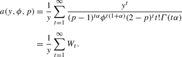 It is well known (e.g., see Dunn and Smyth 2005) that the above formula for the normalizing quantity does not have a closed-form expression. However, methods have been proposed that can approximate it reasonably well. Dunn and Smyth (2005) show that as a function of t, (2.4) is strictly convex, and that W t decays faster than geometrically on either side of the mode of W t , denoted t max. As a result, we can replace the infinite sum with finite sum over important terms. That is, we can find the limits t L <t max and t U >t max such that \(W_{t_{L}}\) and \(W_{t_{U}}\) are less than \(\epsilon W_{t_{\max}}\) for some given threshold ϵ, and evaluate the normalizing quantity as