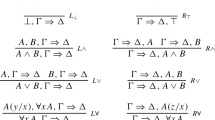 One thing we should point out is that the definition we’ve given for internalizing a metarule seems to be sensible to the order in which the premises of the metarule occur. So for example the sequent \(\Rightarrow Val(\psi _{1}, \psi _{2})\wedge Val(\phi _{1}, \phi _{2})\rightarrow Val(\chi _{1}, \chi _{2})\) does not strictly count as the internalization of a metarule with left premise \(\phi _{1}\Rightarrow \phi _{2}\), right premise \(\psi _{1}\Rightarrow \psi _{2}\) and conclusion \(\chi _{1}\Rightarrow \chi _{2}\). Of course, this is harmless. The system we are considering deals with multisets and so the exchange metarules are built in. As a consequence \(\wedge \) is a commutative connective and this means that if \(\Rightarrow Val(\psi _{1}, \psi _{2})\wedge Val(\phi _{1}, \phi _{2})\rightarrow Val(\chi _{1}, \chi _{2})\) has a proof, \(\Rightarrow Val(\phi _{1}, \phi _{2})\wedge Val(\psi _{1}, \psi _{2})\rightarrow Val(\chi _{1}, \chi _{2})\) has a proof as well.