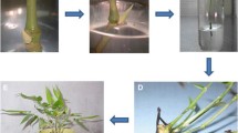 Jiménez, V., Castillo, J., Tavares, E. et al. In vitro propagation of the neotropical giant bamboo, Guadua angustifolia Kunth, through axillary shoot proliferation. Plant Cell Tiss Organ Cult 86, 389–395 (2006). https://doi.org/10.1007/s11240-006-9120-4