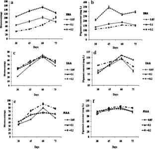 Bixa orellana L. is a tree native to South America known for its reddish orange pigment ‘annatto’ produced only on the aril portion of its seeds. It is the most preferred natural food colorant next to saffron, having wide applications in the dairy industry and also as a cosmeceutical. Normal root cultures of B. orellana were established under in vitro conditions on Murashige and Skoog (MS) medium containing α-naphthaleneacetic acid (NAA), indole-3-butyric acid (IBA) and indole-3-acetic acid (IAA) at 0.05–0.2 mg l−1. The annatto pigment from in vitro-raised normal roots was extracted with chloroform, and later the ethanol-dissolved extract was analyzed both qualitatively by thin-layer chromatography (TLC) and spectrophotometrically quantified followed by High Performance Liquid Chromatography (HPLC) confirmation. The maximum amount of annatto pigment (346 ± 3.8 mg/100 g dry wt.) and maximum root biomass (152 ± 2.5 mg dry wt.) were recorded after 45 and 60 days of growth, respectively, on MS medium containing 0.1 mg l−1 indole-3-butyric acid (IBA). Producing annatto pigment from normal root cultures under in vitro conditions is a novel approach when compared to the natural annatto pigment that is produced only on the aril portion of seeds. This allows the production of fresh pigment throughout the year.