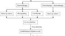 Wang QC, Cuellar WJ, Rajamaki ML, Hirata Y, Valkonen JPT (2008) Combined thermotherapy and cryotherapy for efficient virus eradication: Relation of virus distribution, subcellular changes, cell survival and viral RNA degradation in shoot tips. Mol Plant Pathol 9:237–250