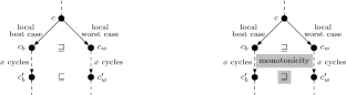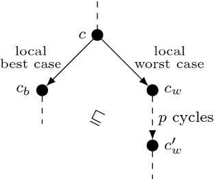To conclude \(c'(i) \sqsubseteq _{\mathcal {P}}d'(i)\), it remains to be proven that \(c'.\textit{cnt}(i) \ge d'.\textit{cnt}(i)\) if \(c'.\textit{stage}(i) = d'.\textit{stage}(i)\). Immediately after the pipeline advance, \(c'.\textit{cnt}(i)\) is the latency determined by \( latency (i)\) and thus \(d'.\textit{cnt}(i)\) cannot be higher because the number of remaining cycles is never increased during \( cycle \). \(\square \)
