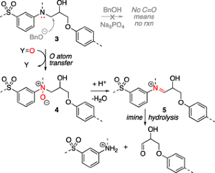 Carbon fiber-reinforced polymer (CFRP) materials are widely used in aerospace and recreational equipment, but there is no efficient procedure for their end-of-life recycling. Ongoing work in the chemistry and engineering communities emphasizes recovering carbon fibers from such waste streams by dissolving or destroying the polymer binding. By contrast, our goal is to depolymerize amine-cured epoxy CFRP composites catalytically, thus enabling not only isolation of high-value carbon fibers, but simultaneously opening an approach to recovery of small molecule monomers that can be used to regenerate precursors to new composite resin. To do so will require understanding of the molecular mechanism(s) of such degradation sequences. Prior work has shown the utility of hydrogen peroxide as a reagent to affect epoxy matrix decomposition. Herein we describe the chemical transformations involved in that sequence: the reaction proceeds by oxygen atom transfer to the polymer’s linking aniline group, forming an N-oxide intermediate. The polymer is then cleaved by an elimination and hydrolysis sequence. We find that elimination is the slower step. Scandium trichloride is an efficient catalyst for this step, reducing reaction time in homogeneous model systems and neat cured matrix blocks. The conditions can be applied to composed composite materials, from which pristine carbon fibers can be recovered.