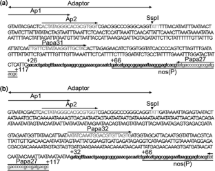 Zhou Y, Newton RJ, Gould JH (1997) A simple method for identifying plant/T-DNA junction sequences resulting from Agrobacterium-mediated DNA transformation. Plant Mol Biol Rep 15:246–254. doi:10.1023/A:1007490504555