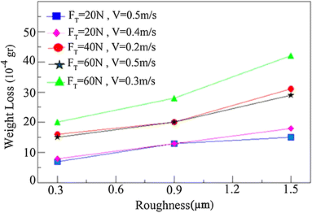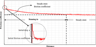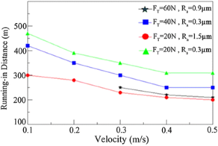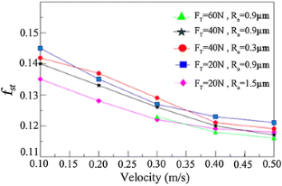 Test number | Applied load (N) | Initial surface roughness (µm) | Relative speed (m/s) | f ini | f st | L r (m) | W L (10−4 gr) |