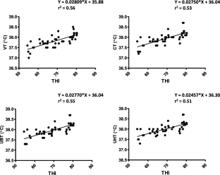 Kaufman, J. D., A. M. Saxton and A. G. Rius (2018). Short communication: Relationships among temperature-humidity index with rectal, udder surface, and vaginal temperatures in lactating dairy cows experiencing heat stress. J Dairy Sci 101(7): 6424-6429.