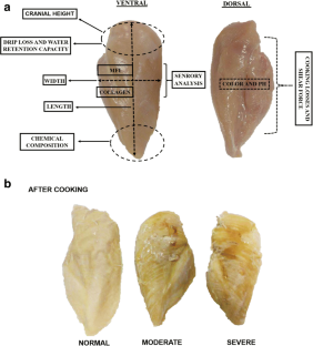 Tasoniero, G., Cullere, M., Cecchinato, M., Puolanne, E., Dalle Zotte, A., 2016. Technological quality, mineral profile, and sensory attributes of broiler chicken breasts affected by White Striping and Wooden Breast myopathies, Poultry Science, 95, 2707–2714.