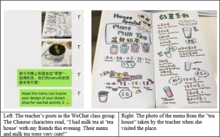 Unexpectedly, I went dinner with a friend a few days before the deadline of the activity and found the menu of that restaurant very creative, so I took a picture and sent it in the WeChat groups right away to encourage the creativity of students | Enriching task materials |