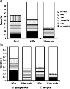 Ryan, T.J., Conner, C.A., Douthitt, B.A. et al. Movement and habitat use of two aquatic turtles (Graptemys geographica and Trachemys scripta) in an urban landscape. Urban Ecosyst 11, 213–225 (2008). https://doi.org/10.1007/s11252-008-0049-8