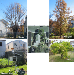 A rainfall interception study was conducted in Oakland, California to determine the partitioning of rainfall and the chemical composition of precipitation, throughfall, and stemflow. Rainfall interception measurements were conducted on a gingko (Ginkgo biloba) (13.5 m tall deciduous tree), sweet gum (Liquidambar styraciflua) (8.8 m tall deciduous), and lemon tree (Citrus limon) (2.9 m tall broadleaf evergreen). The lemon, ginkgo, and sweet gum intercepted 27.0%, 25.2% and 14.3% of gross precipitation, respectively. The lemon tree was most effective because it retained its foliage year-round, storing more winter rainfall than the leafless ginkgo and sweet gum trees. Stemflow was more important for the leafless sweet gum. Because of its excurrent growth habit and smooth bark, 4.1% of annual rainfall flowed to the ground as stemflow, compared to less than 2.1% for the lemon and 1.0% for the ginkgo. Water samples were collected from throughfall, stemflow, and a nearby control site to measure concentrations of nutrients and heavy metals. Compared to the control, samples from under trees had higher concentrations of nutrients and metals (e.g., N, P, K, Zn and Cr), indicating that atmospheric deposition to tree crowns was a major source of pollutants. Nutrient and metal concentrations were highest in gingko tree’s throughfall. Its rough stem surfaces and dense branching pattern appeared to trap more pollutions than the other two trees.