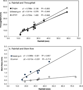 Guevara-Escobar A, Gonzalez-Sosa E, Veliz-Chavez C, Ventura-Ramos E, Ramos-Salinas M (2007) Rainfall interception and distribution patterns of gross precipitation around an isolated Ficus benjamina tree in an urban area. J Hydrol 333(2–4):532–541