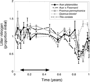 Melillo JM, Aber JD, Muratore JF (1982) Nitrogen and lignin control of hardwood leaf litter decomposition dynamics. Ecology 63:621–626