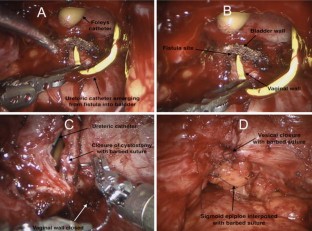 This study reports on 210 patients, in whom barbed suture was used during this period. These included partial nephrectomy (20), pyeloplasty (9), ureteric tailoring and reimplantation (1), closure of bladder after Nephroureterectomy with excision of bladder cuff (8), closure of vaginal cuff in female radical cystectomy (12), partial cystectomy (1), radical prostatectomy (152), simple prostatectomy (2), vesicovaginal fistula repair (3), sacrocolpopexy (1), and hernia repair (1). We encountered 5 instances (2.38%) of tissue cut through possibly attributable to the use of barbed suture and 4 instances of misplacement of suture occurred, of these two required a new suture, whereas retrograde pull back of suture and needle was performed in 2 cases. No instance of slip back/loosening of suture was noted once it was tightened. At mean follow-up of 6.8 (1–14 months) months, we did not encounter any complications of urinary leakage, stone formation or fistula or any clinical evidence of urinary tract obstruction due to the use of barbed suture.