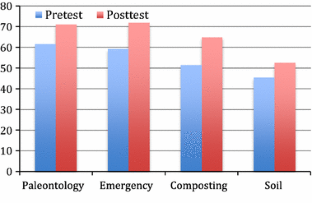 In this paper, results from a 2-year informal science education study are presented. Children (aged 8–12) in this study participated in multi-aged groups to learn science within the context of paleontology and climate change. The goals of the project were to increase science content knowledge among underrepresented minority students and to enhance their interest in science. Providing urban students of color with opportunities to learn science may promote social justice and science as a civil right. Students in this study demonstrated science content knowledge and academic brilliance as they engaged in environmental science tasks. Results of paired t tests revealed science content knowledge increased significantly in Phase 1 (Saturday academy) of the study and on two of three content tests in Phase 2 (summer camp). Qualitative data revealed the depth of student learning and that student interest in science was generally positive. We conclude the program was moderately successful in terms of its goals and provided lessons learned in terms of engaging in equitable science teaching. This study adds to the extant literature on underrepresented students’ content knowledge and interest in science while participating in place-based, informal science education focused on paleontology and climate change.